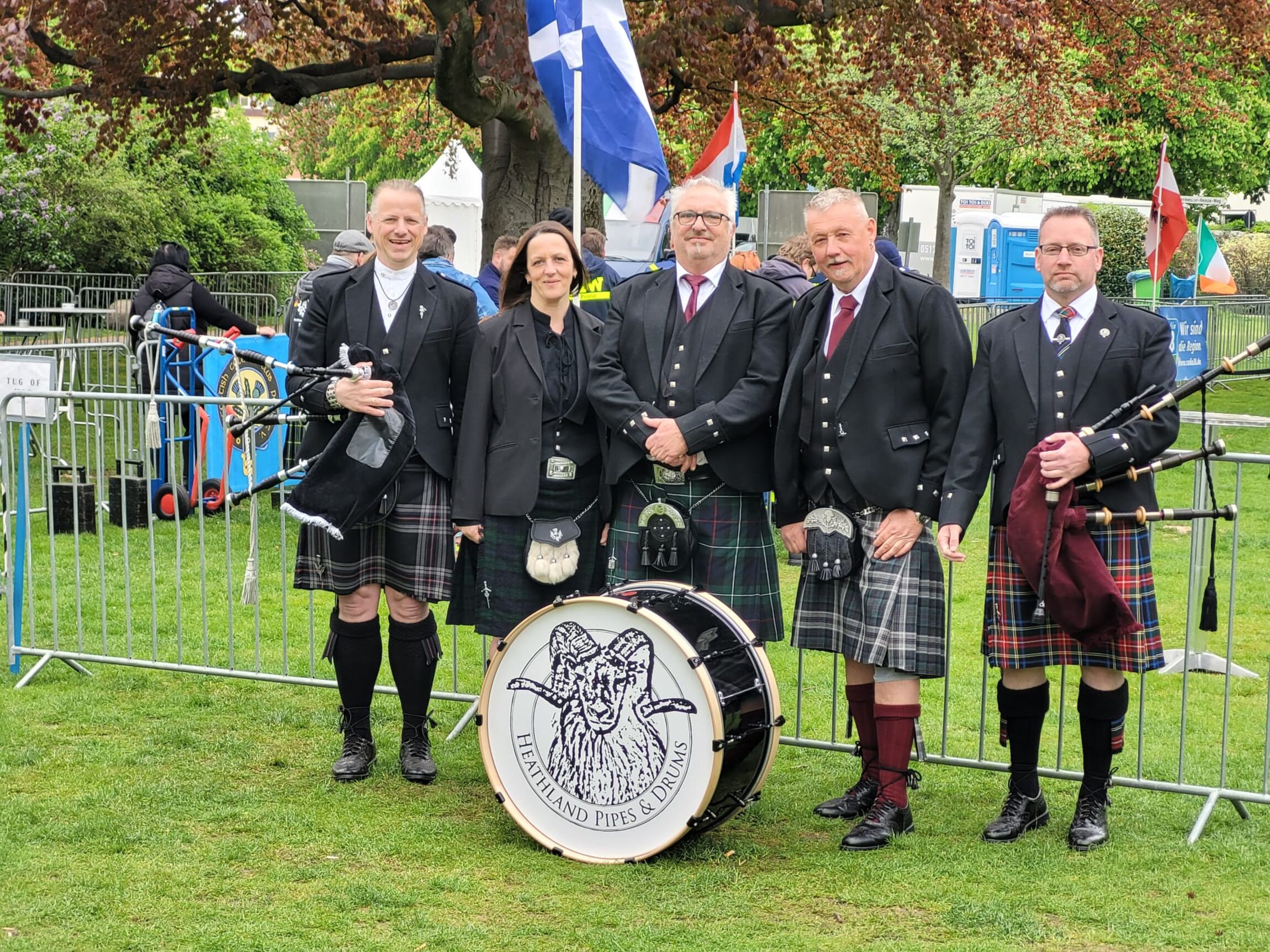 Heute besteht die Band aus zwei Dudelsackspielern und drei Drummern an Bass, Snare und Tenordrum und bilden die „Heathland Pipes and Drums“. Der Name drückt die Zugehörigkeit zur Heimat, der Lüneburger Heide, aus. Diese wird auch durch die Heidschnucke symbolisiert, welche das Logo der Band prägt.